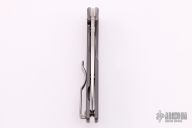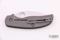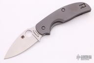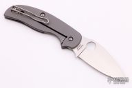 This C123TIP Sage 2 by Spyderco features a satin finished blade with thumb hole, notched thumb rest and choil. The handle is comprised of a bead blasted titanium frame over barrel spacers. Steel wire tip up clip is reversible for left or right hand carry. Great blade seating and lock up. Includes the original box  and papers.  Excellent condition.