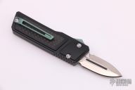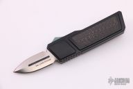 This Akuma OTF Auto by No Limit Knives features a satin finished double-edged blade with carbon fiber inlays. The handle has a black aluminum frame with carbon fiber inlays, tip up anodized titanium clip. Comes with a zippered case. New from maker.