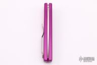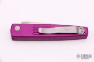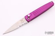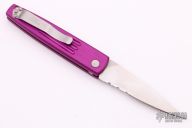 This 1000S Spike by Benchmade features a satin finished partially serrated blade. The handle is comprised of a purple anodized aluminum handle with tip up stainless steel clip. Strong coil spring action. Excellent condition.