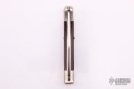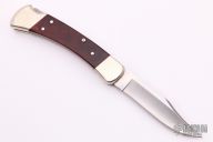 "This old classic BUCK knife 110 "Folding Hunter" was first introduced in 1965 - it has been BUCKS mainstay ever since. Some say the Buck 110 is the most copied knife in the world. This Buck automatic knife has a beautiful wood scales with nickel silver bolsters and a plate that opens knife automatically. A must for any BUCK collection." Excellent condition. Comes with black leather belt sheath, box and papers.