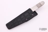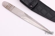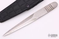 This knife by ITAC features a dagger style blade with nice hamon, .225" blade stock and .863" blade depth, full tang construction. Comes with a leather covered kydex sheath and zippered case. Has some light scratches, otherwise good condition.