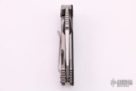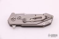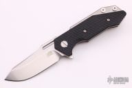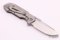 This Half Track from Hinderer Knives features a stonewash finished slicer blade with swedge, fullers, notched thumb rest and flipper. The handle is comprised of a stonewash finished titanium frame complemented by a black G-10 scale. Titanium clip is positioned for tip up, right hand carry. Includes original box, papers and hardware. Excellent condition.