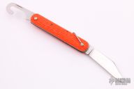 This auto is a Vietnam era government issued to pilots. Stainless steel blade with a parachute cord cut away blade. It is safety orange carved scales. Extra large lanyard bail. The spring still works well. It has a safety lock that can be used in closed position. Made in U.S.A. In great shape for being 40+ years old. Has some scratches, otherwise excellent condition.