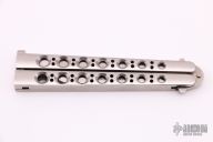 The model 44 by Benchmade is rare and hard to find. Tanto style blade. Stainless steel skeletonized handles with T latch. Has some light scratches, otherwise excellent condition. "Harley Davidson" on the blade. Comes with original sheath.