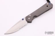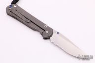 This Large Sebenza 21 by Chris Reeve features a stonewashed partially serrated blade with single anodized thumbstud. The frame is bead blasted titanium with matching tip up clip. Nice detent, lockup and blade seating.  Comes with box and papers dated July 16th, 2018.  Excellent Condition.