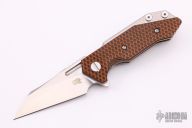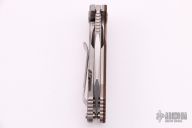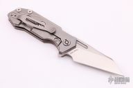This Half Track from Hinderer Knives features a stonewashed wharncliffe blade with swedge, fullers, notched thumbrest and flipper. The handle is comprised of a stonewashed titanium frame complemented by a black/orange G-10 scale. Titanium clip is positioned for tip up, right hand carry. Excellent condition. Comes with original box, papers and hardware.
