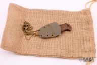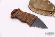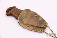 This Snuggler by Tracker Dan features a spear point blade with false top edge, .111" blade stock and .929" blade depth. The handle has tan cord wrap. Comes with a kydex neck sheath. Excellent Condition.
