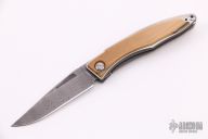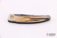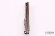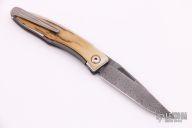This Mnandi by Chris Reeve Knives features a Devin Thomas Stainless Ladder Pattern Damascus blade with thumb grooves and notched thumbrest. The handle is comprised of a two-tone titanium frame with mammoth ivory inlays. Machined titanium tip up clip. Excellent condition. Comes with original box and papers dated September 5, 2017.