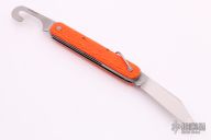 This auto is a Vietnam era government issued to pilots. Stainless steel blade with a parachute cord cut away blade. It is safety orange carved scales. Extra large lanyard bail. The spring still works well. It has a safety lock that can be used in closed position. Made in U.S.A. In great shape for being 40+ years old. Has some scratches, otherwise excellent condition.