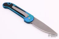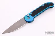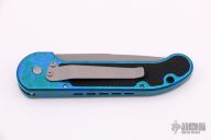 This L-UDT by Microtech is dated 2/98, it has a bead blast blade. Splash anodized aluminum handle with non-slip inserts. Side opening coil-spring automatic. Tip down carry bead blasted titanium clip. Excellent condition.