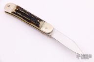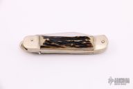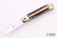 This leverlock auto by Puma features a mirror polished blade, nickel silver double bolsters, stag scales, and brass liners and pins. Opens with a nice snap. Very fast opening. Has some patina and light scratches, otherwise excellent condition.