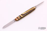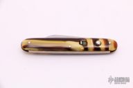 This double auto by Schrade was made between 1909-1916, it features two blades both with their own push button and safety. The handle has acrylic scales, brass liners and steel backspacer. Has some light scratches, otherwise excellent condition for its age. US Patents DEC 21,09, Sept 13,10, June 6,16 on the blade