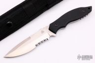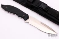 This Equalizer has a satin finished recurve blade with false top edge and notched thumb-rest. The handle is textured black G-10 with lanyard hole. Comes with tactical nylon sheath. Excellent  Condition.