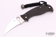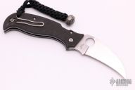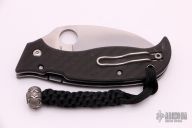 This C116CFP Superhawk by Spyderco features a satin finished hawkbill blade with thumbhole. The handle is comprised of textured carbon fiber scales over stainless steel liners and barrel spacers. The wire clip is reversible for right or left hand carry. Comes with original box. Has a few light scratches and some scuffs on the handle, otherwise excellent condition.