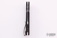 The Canis from Spyderco is a spectacle of a knife designed for everyday carry. The blade is made of CPM-S30V, and features a truly unique blade profile and grind. It has a Wharncliffe shape, a flat grind, and a ground out section which reduces weight, but full spine thickness near the tip to reinforce it. The handle is made of a carbon fiber/G-10 laminate with a gentle texture to hold it nicely in the hand.