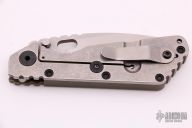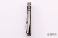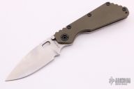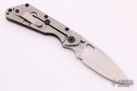 This SMF from Strider Knives features a stonewashed blade and textured green G10 and stonewashed titanium handle and matching tip up titanium clip. Notches on thumbrest, rear of handle, and lockup. Includes Hinderer "Lock Bar Stabilizer" for maximum reverse lock retention. Has a few light scratches, otherwise excellent condition.