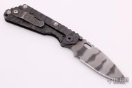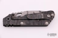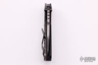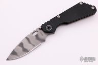 This SNG by Strider features a tiger striped blade and a black G-10 and flamed titanium frame and tip up titanium clip. Nice detent, lockup and blade seating. Has some light scuffs/scratches, otherwise good condition.