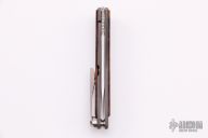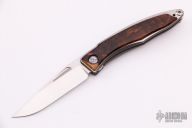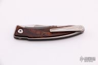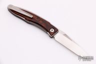 This Mnandi by Chris Reeve Knives has a satin finished blade with notched thumbrest and nail nick. The handle has a bead blasted and satin finished titanium frame with Honduran Rosewood inlays. Titanium clip, tip up carry. Excellent condition. Comes in original box with paperwork, birth card (Feb 26, 2013), leather slip sheath, and allen tool.