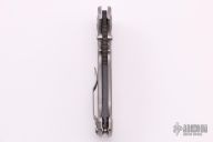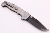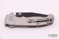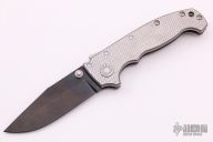 This AD20 by Andrew Demko features a DLC finished 3V blade with notched thumbrest, thumbhole and dual thumbstuds. The handle has an all Titanium frame with a tip up stainless steel clip and "Shark" lock release on the spine. New from Maker!