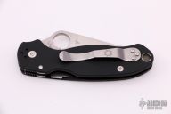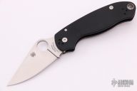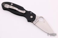 This Para 3 by Spyderco features a satin finished clip point blade with thumb hole and notched thumbrest. CPM Cruwear Blade Steel. The handle is comprised of smooth black G-10 frame over nested steel liner and stand-offs. The steel pocket clip is 4 way adjustable. Includes original box and paperwork. Excellent condition.