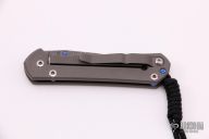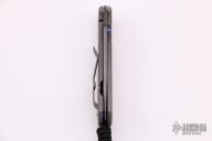 This small sebenza 21 by Chris Reeve Knives features a Devin Thomas Ladder Pattern Stainless Damascus blade with single titanium thumbstud and a notched thumbrest. The handle is bead blasted titanium. Strong lock up, nice detent and blade seating is dead center. Includes original box and paperwork dated August 26th, 2013. Excellent condition.