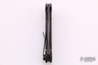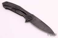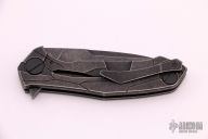 This T90 Flipper from Custom Knife Factory features a black stonewashed drop point blade with swedge. The handle is comprised of matching milled titanium frame and tip up pocket clip. Great detent and lock up. Includes velcro case, makers card and cleaning cloth. Excellent condition.