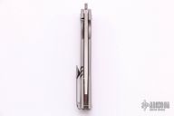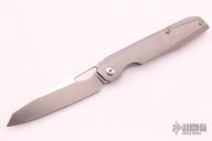 The Kizer Genie, designed by Gage, is a sturdy front flipper knife. The word Genie is German, and means "Genius". Fortunately, it doesn't take a genius to see that this knife is made to work! With a bead-blasted titanium frame, a stonewashed CPM-S35VN steel blade, and solid lock-up, you'll be cutting reliably as long as you need. Comes with original box, velcro case and papers. Excellent condition.