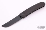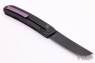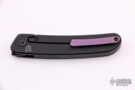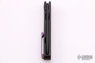 This knife by Blink Blades features a black blade and flipper. The handle is composed of black stonewashed titanium nicely complemented by a purple titanium tip up pocket clip. Excellent Condition.