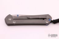 This large Sebenza 21 features a tumble finished blade and a bead blast titanium frame. Bead blast titanium clip, tip up carry. Has blue thumbstud and lanyard bar. Strong lockup, nice detent and blade seating. Comes with original packaging and papers. Excellent condition. Dated September 21, 2016.