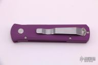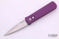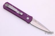 This 721 Godson from Pro-Tech Knives features a satin finished spear point blade with swedge. The handle is comprised of a purple anodized aluminum frame with a stainless steel tip up clip. Includes original box and paperwork. Excellent condition.