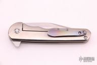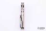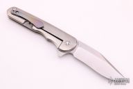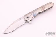 Kizer Cutlery, in collaboration with knife maker Matt Cucchiara, present the Flashbang. This production version of Matt's custom Flashbang flipper has exceptional fit and finish. Its contoured titanium handle is satin finished and features Matt's large skull profile, anodized. The matching pocket clip is machined titanium to complement the sleek style of the knife and the tumbled S35VN stainless steel blade flies open on a ball-bearing pivot at the push of the flipper. Overall, this is truly a superb folder. Has a few light scratches, otherwise excellent condition.