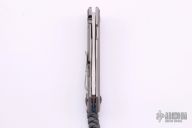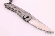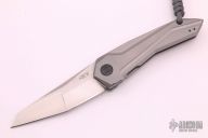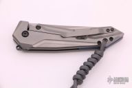 This knife by Zero Tolerance is a GTC Knives design, it features a stonewashed tanto blade with flipper. The handle has a milled and bead blasted titanium frame with tip up reversible titanium clip, lanyard hole at the butt, blue backspacer. Nice detent, lockup and blade seating. Excellent condition. #2669