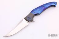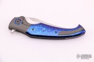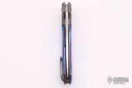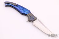 This Hydra Bolsterlock Flipper by Lee Lerman features a hand rub satin finished blade with flipper. The handle has a bead blasted titanium frame with mokuti scales, pivot collars and floating backspacer, tip up bead blasted titanium clip with hidden screws. Has a couple extremely light scuffs, otherwise excellent condition. Comes with a zippered case.