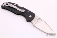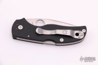 This Native 5 by Spyderco features a satin finished drop point blade with swedge, thumbhole and jimping on the thumb rest and choil. The handle is comprised of black G10 scales over steel liners and lock back. The steel pocket clip is 4 way reversible. Lanyard hole in pommel. Includes original box and paperwork. Previously owned, excellent condition.