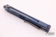 This Nieves model is outfitted with a battle blue titanium handle and a working finished spanto blade.