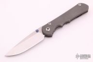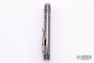 This Large Sebenza 25 by Chris Reeve features a tumbled blade with dual anodized thumbstuds. The frame is bead blasted titanium with matching tip up clip. Nice detent, lockup and blade seating. Has some scratches and scuffs, has been resharpened, otherwise good condition. Comes with box and original birth card dated February 12, 2014.
