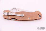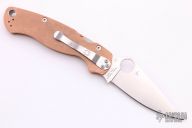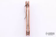 This Paramilitary 2 Linerlock Folder has a satin finished clip point REX45 blade with thumb hole and notched thumb rest. Handle is tumbled copper with stainless steel liners and stainless steel 4-way reversible clip. Excellent condition. Comes with original box and papers.