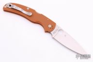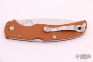 This Native Chief takes the time-tested design of the original and stretches it out to create a longer and slimmer profile with even more cutting performance. Burnt Orange G-10 scales and a full-flat ground Rex 45 steel blade solidify the design. Textured G-10 handle scales are backed up by a precision-machined lockback mechanism. 4-position pocket clip allows for fully ambidextrous tip-up or tip-down carry. Excellent condition. Comes with original box and papers.