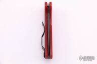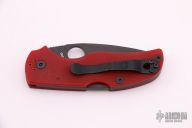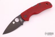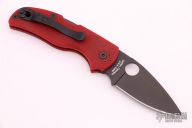 This Native 5 by Spyderco has a plain edged black blade and red G-10 handle with black stainless clip, 4-way reversible. Includes original box and papers. Excellent condition.