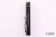 This MSC SNG framelock folder by Mick Strider features a black blade and a MEFP aluminum and flamed titanium frame and tip up titanium clip. Includes Hinderer "Lock Bar Stabilizer" for maximum reverse lock retention. Nice detent, lockup and blade seating. Has a light scuff on the clip, otherwise excellent condition.
