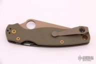 This Paramilitary 2 Linerlock Folder from Spyderco has a Flat Dark Earth finished clip point blade with thumbhole and notched thumbrest. Handle is green  G-10 with stainless steel liners and flat dark earth 4-way reversible clip. Comes with original box and papers. Excellent condition.