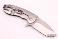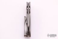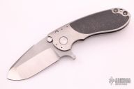 This S-96 framelock flipper from Direware Knives features a two tone blade with satin finished grinds and blasted flats. Smooth flipping action that requires no wrist movement with a strong lock up, nice detent and blade seating. The handle has carbon fiber inserts and a satin finished titanium frame with tumbled edges, a tumbled titanium pocket clip positioned for tip up carry. Backspacer is also titanium. Comes with original box. Excellent condition.