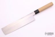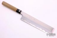 This Usuba from Shinichi Watanabe features a stainless clad blue steel blade with a hidden tang construction. .195" Blade Stock. 2.128" Blade Depth. The handle features horn hilt nicely complemented by a Ho wood grip. This is a fantastic piece that is razor sharp. New from Maker.