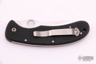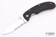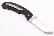 The Tim Wegner C48S by Spyderco is a very collectable Spyderco knife that has been discontinued and is designed to be a hunter with its large hunter trailing point blade. Tim Wegner ended up producing this knife with Blade Tech. Partially serrated and satin finished blade, ATS34. Textured black G10 handle. Stainless tip up carry clip and liner. Has a nice detent, lockup and blade seating. Includes Spyderco box and papers.  Excellent Condition.