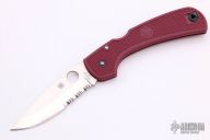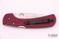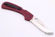 This C16PS Wayne Goddard design features a satin finished partially serrated blade with thumbhole. The handle has burgundy FRN scales, tip down black stainless steel clip and a stainless steel backspacer and lockbar, lanyard hole at the butt. Comes with original box and papers. Excellent condition.