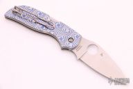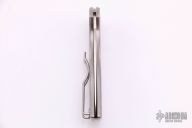 A Chaparral is a shrub native to the Western United States with the unique ability to perennially survive, revive and regenerate after being destroyed by drought. It’s also what Spyderco calls a new and continuing series of gentlemen’s folders. Mid-sized Chaparral folders will have identical blade and handle profiles but showcase variant handle materials. Handle options will be chosen for their elegant appearance and functional utility with a focus directed at making the Chaparral series unique as well as a serious contender in the gent’s knife genre. The Chaparral 2 has a unique textured titanium handle with a mid-positioned back lock and screw-together construction. Attached to the ultra-slim handle, a left-right, tip-up pocket clip arranges the knife deeply inside a pocket. CTS-XHP stainless steel blade. The blade is flat ground and plain edged for the best available cutting performance with non-skid jimping located at both the spine and choil. Excellent condition. Comes with original zippered case and papers.