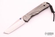 This Large Sebenza Tanto from Chris Reeve features a tumble finished blade and a titanium frame with "N.I.C.A. Limited 400" and a graphic. Nice detent, lockup and blade seating. Has scuffs/scratches, but otherwise good condition. Includes original black leather sheath.