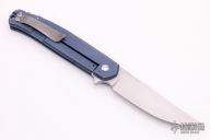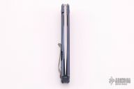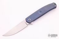 This F6 from Jesper Voxnaes features a bead blasted blade and flipper. The handle has an anodized and tumbled titanium frame with a tumbled titanium backspacer and tip up pocket clip. Great blade seating, detent and lock up. Includes SoMMER sheath. Has a few light scuffs, otherwise excellent condition.