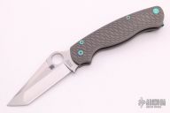 This one has been given custom titanium scales, anodized hardware and tip up deep carry clip. Comes with original box and papers. Does not come with original G-10 scales. Excellent condition.