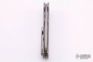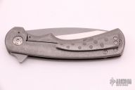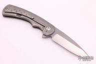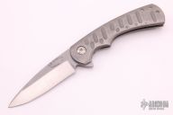 This Lightspeed Flipper from Steven Kelly Knives features a two-tone blade with flipper. The handle has a tumbled titanium frame with matching tip up clip. Rides on bearings, nice detent, lockup and blade seating. Comes with a zippered case. Excellent condition.